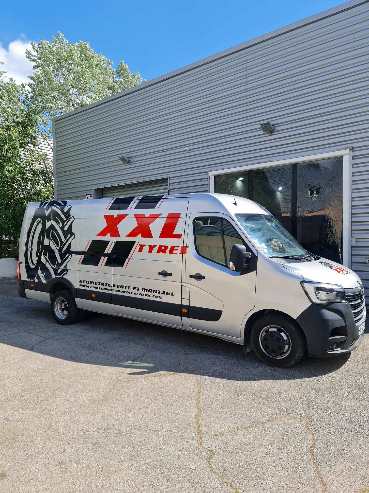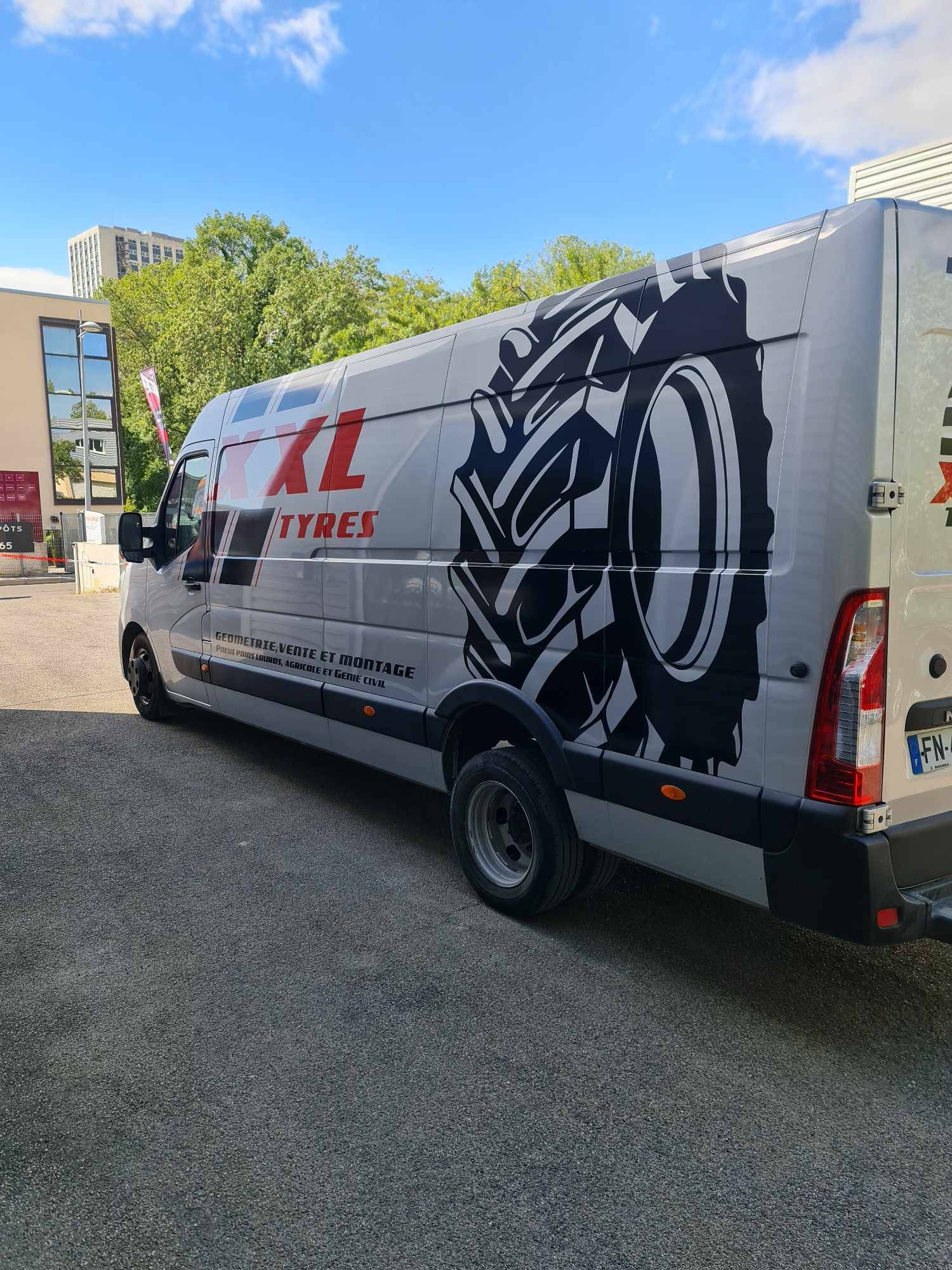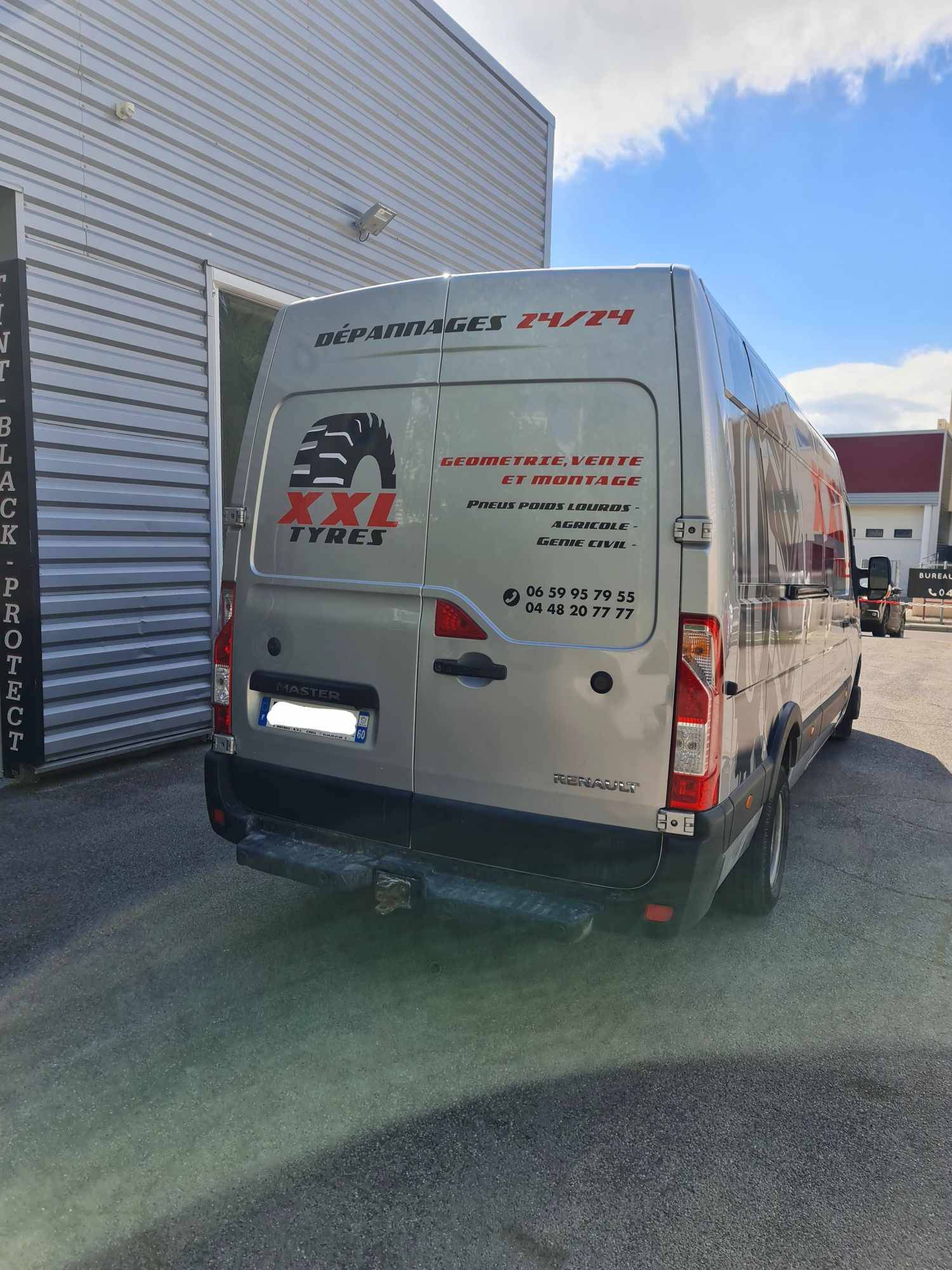 La société Team Pare Brise Montpellier ses occupés de ce Renault Master de la société Pmc pneus sur Montpellier.