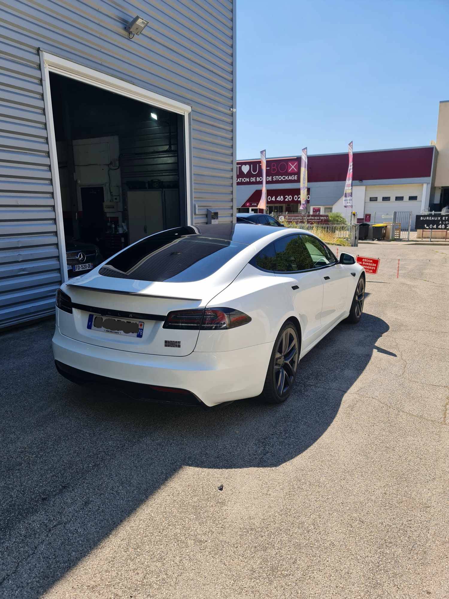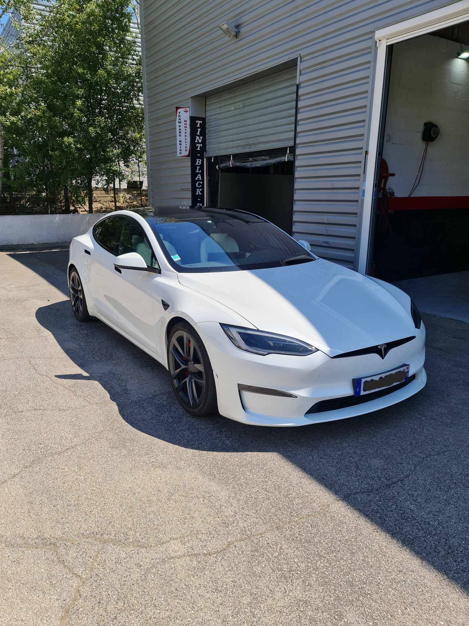 Nous avons récemment effectué la pose de film solaire sur cette Tesla Model s Plaid .