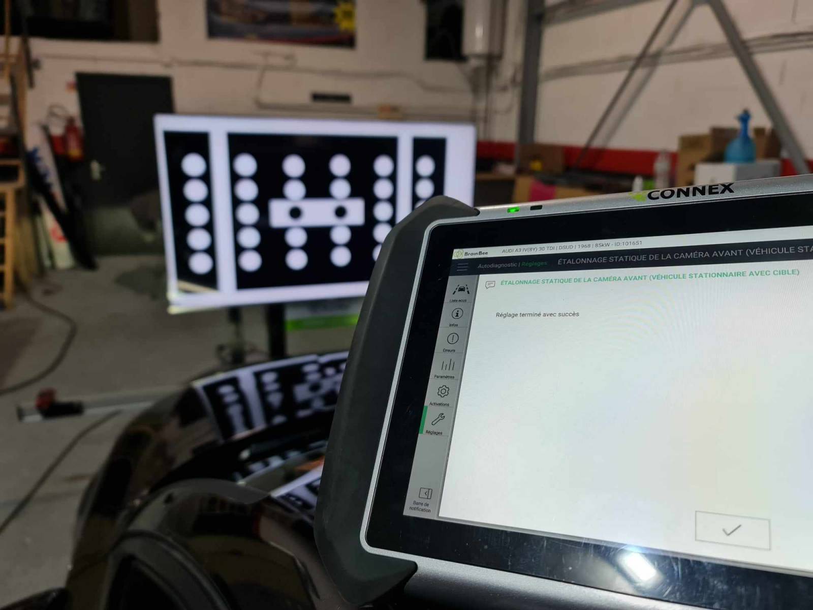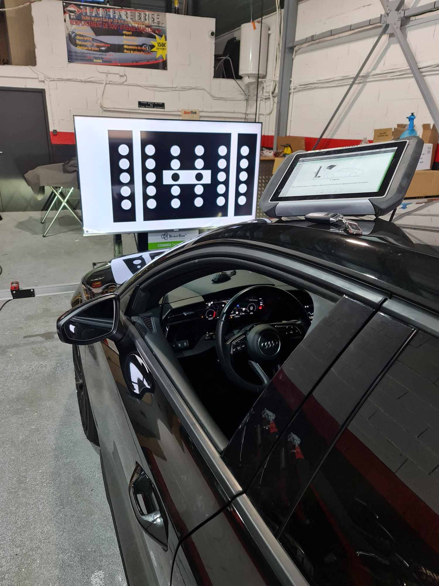 Nous avons effectué sur cette Audi A3 sportback, le calibrage de la caméra du pare brise servant à la lecture des lignes, les panneaux routiers, le maintien des voies.