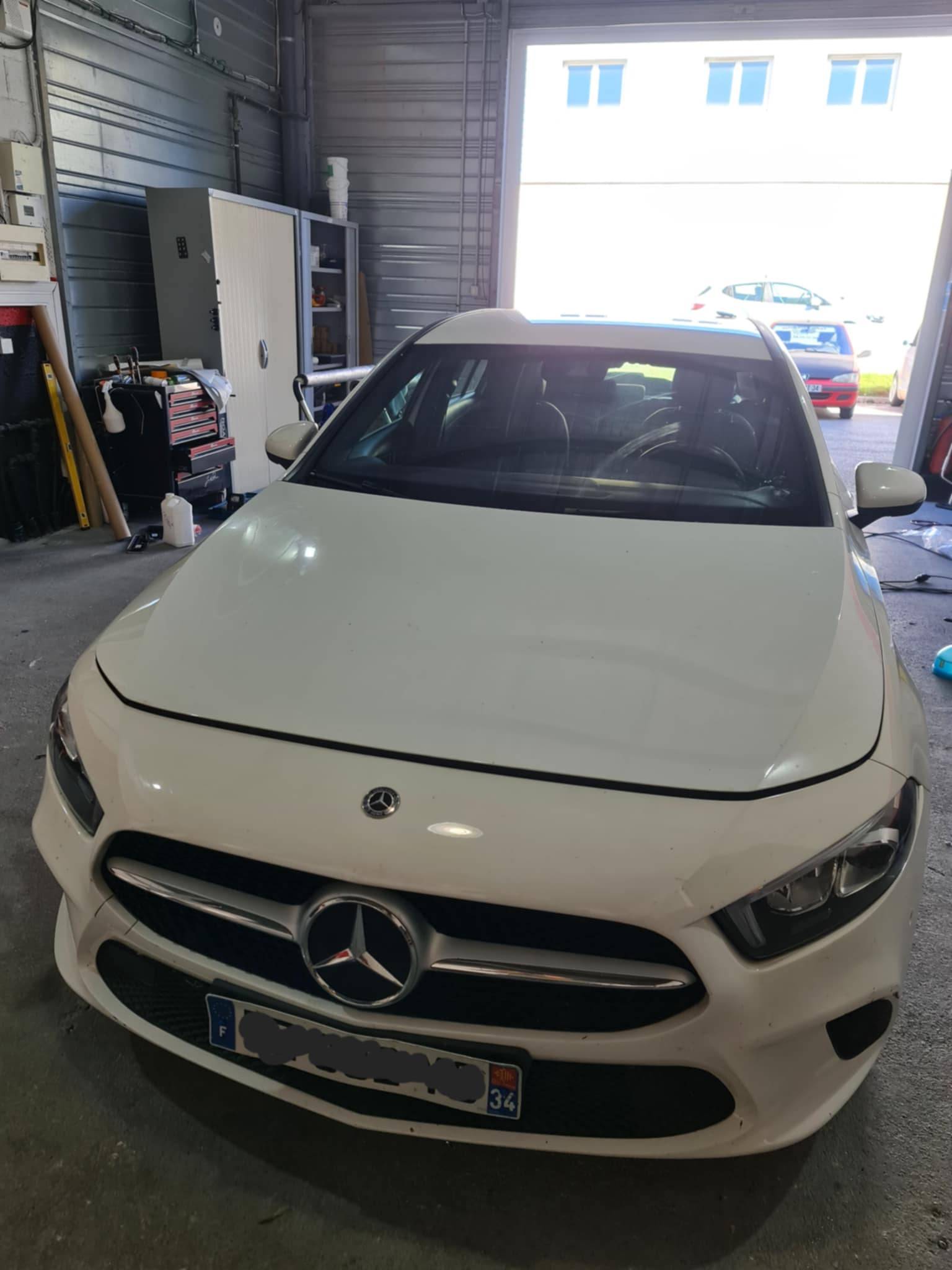 Nous avons effectué sur cette Mercedes Class A, le calibrage de la caméra du pare brise servant à la lecture des lignes, les panneaux routiers, le maintien des voies.