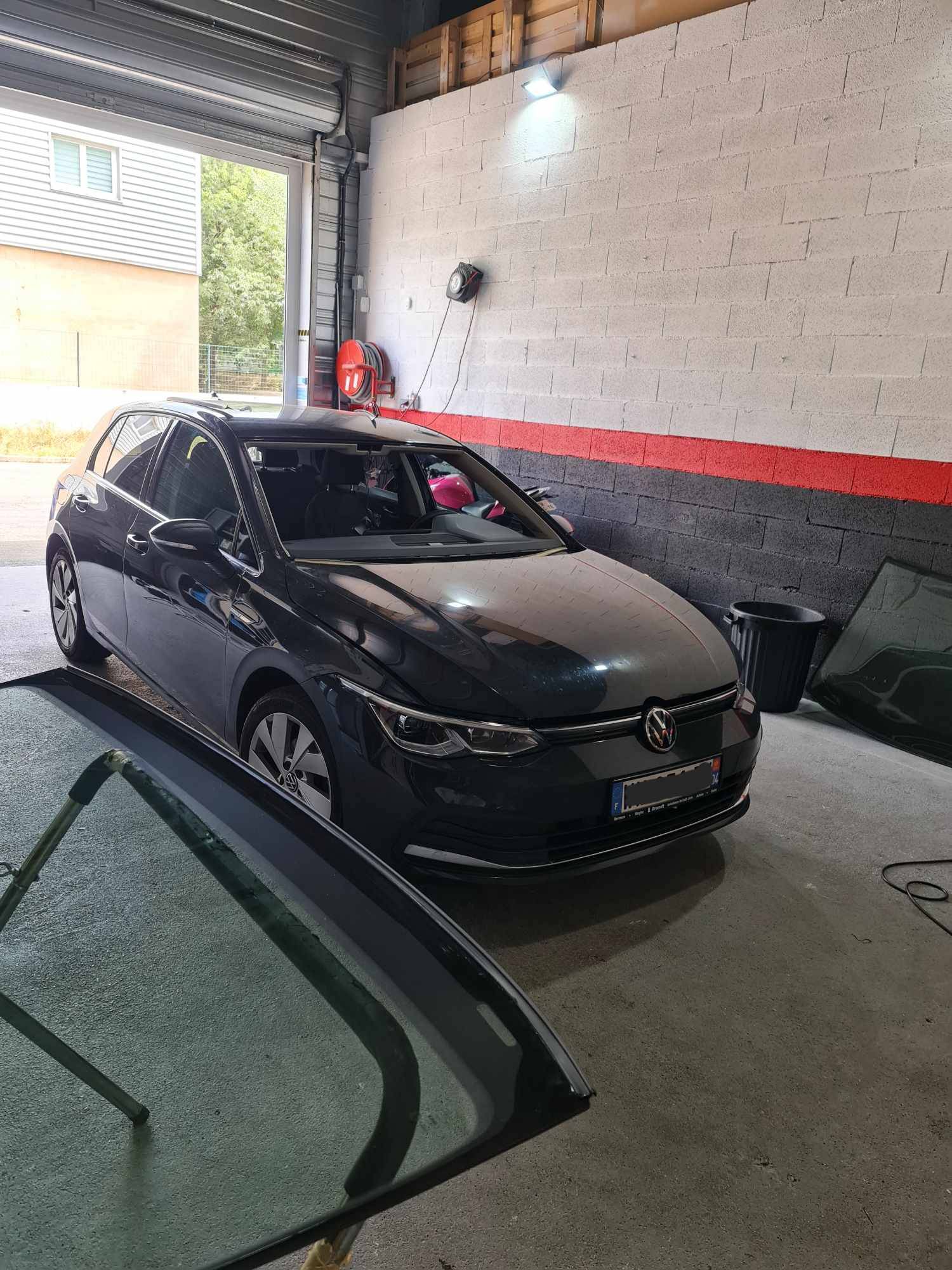 Nous avons effectué sur cette Volkswagen golf 8, le calibrage de la caméra du pare brise servant à la lecture des lignes, les panneaux routiers, le maintien des voies.